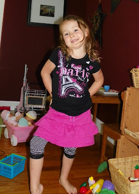 Joli is such a little diva. I have a hard time finding outfits that aren't dress up clothes, but still fit her little style. Otherwise she'll just take her clothes off and put on dress up clothes! This outfit is on the approved list.
