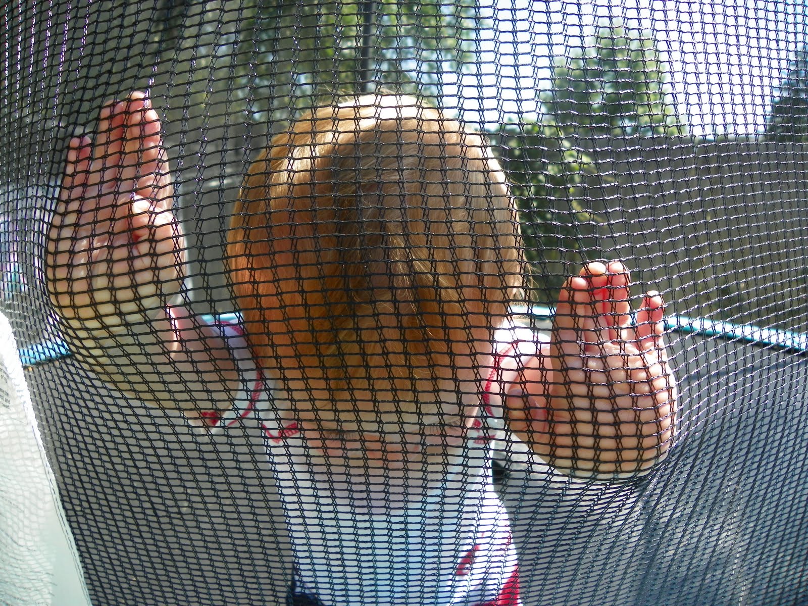 So they played on the trampoline a little bit. Markus likes to sing while he jumps.
